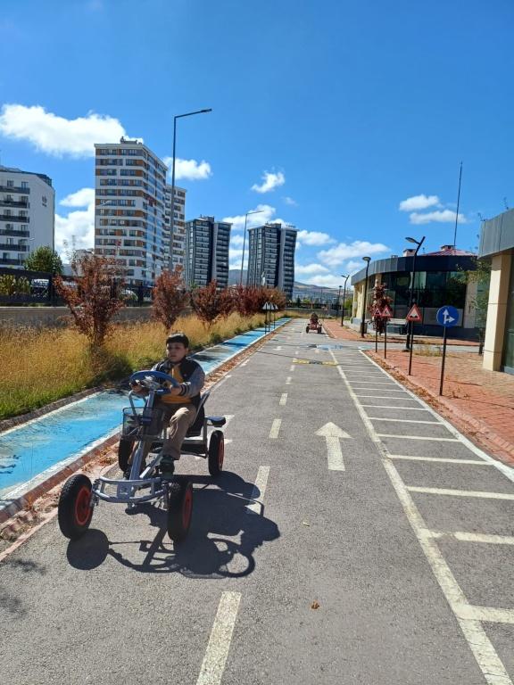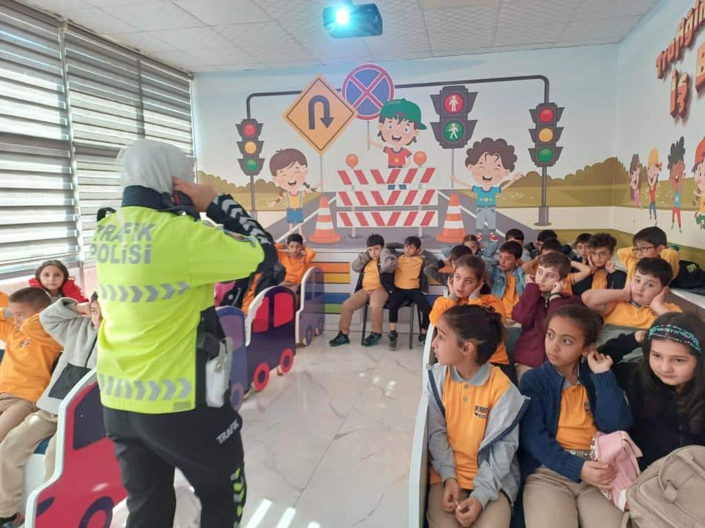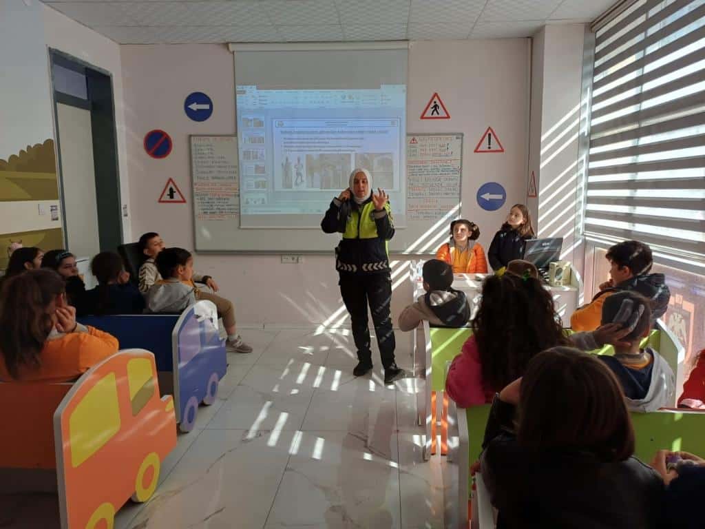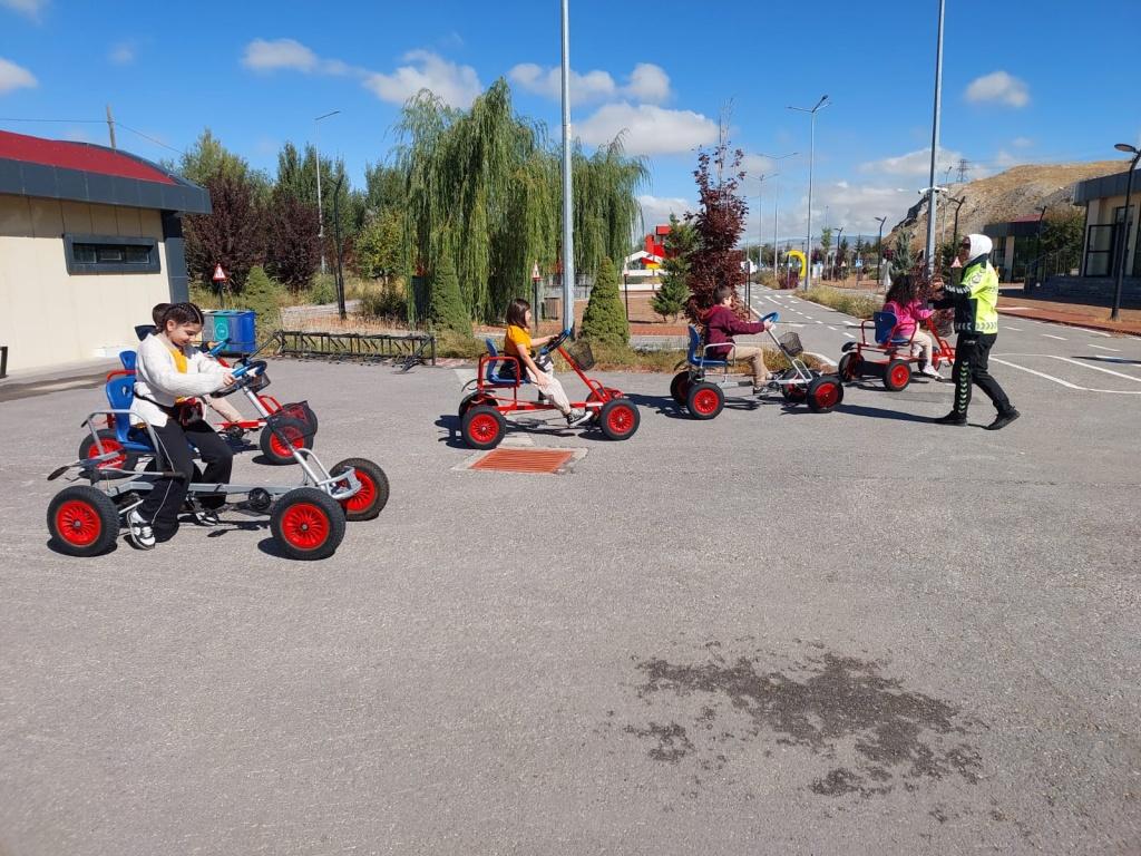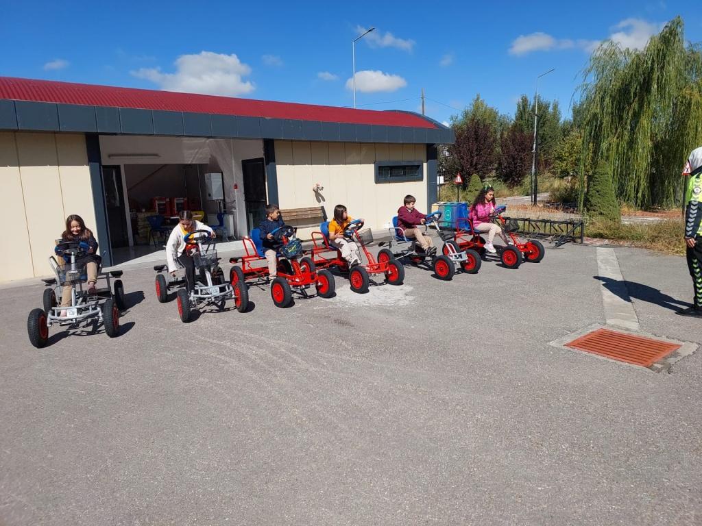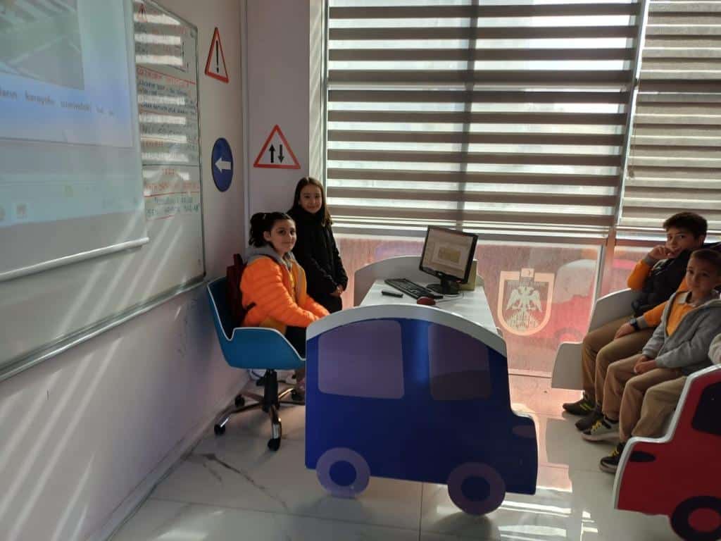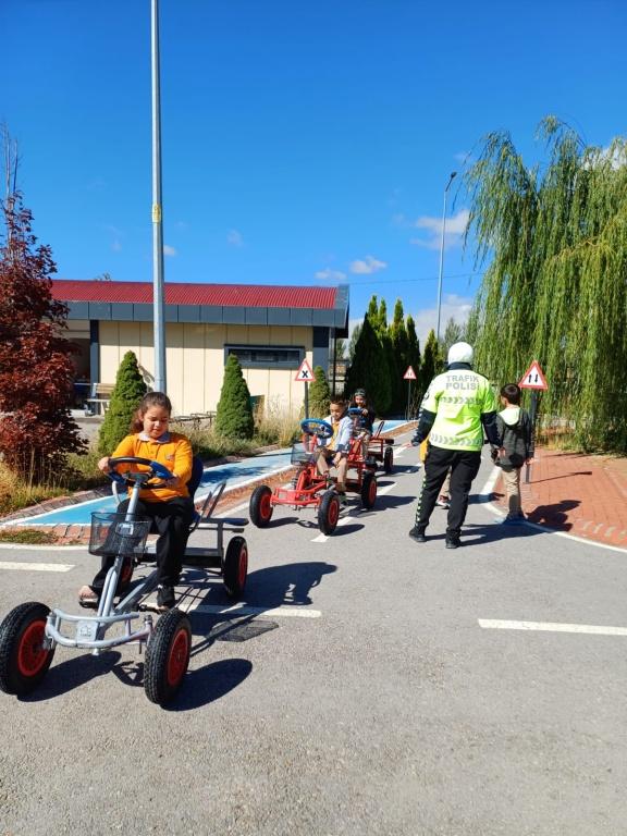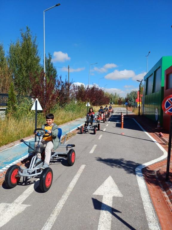 Çocuk Trafik Eğitim Parkına giden 4. sınıf öğrencilerimiz görevli eğitmen tarafından karşılandı. Ardından öğrenciler sınıfta sunumlar eşliğinde uzman eğitmenler tarafından eğitim gördü. Teorik olarak öğrenilen bilgilerden sonra bunları uygulamak için eğitim pistinde görevli trafik polisleri tarafından uygulamalı eğitim verildi.